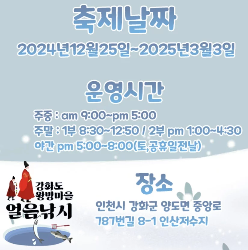 ๊ฐํ๋ ์๋ฐฉ๋ง์ ์ผ์์ถ์ ๊ฐ 2024๋ 12์ 25์ผ๋ถํฐ 2025๋ 3์ 3์ผ๊น์ง ๊ฐํ๋์ก์ด๋น์ด์ถ์ ์ฅ์์ ๊ฐ์ต๋ฉ๋๋ค.[1] ์ด ์ถ์ ๋ ๊ฒจ์ธ ๊ฐํ๋์ ๋ํ์ ์ธ ํ์ฌ๋ก, ๋ค์ํ ์ผ์ ๊ด๋ จ ํ๋๊ณผ ๋์ ์ฒดํ์ ์ฆ๊ธธ ์ ์๋ ๊ธฐํ๋ฅผ ์ ๊ณตํฉ๋๋ค.